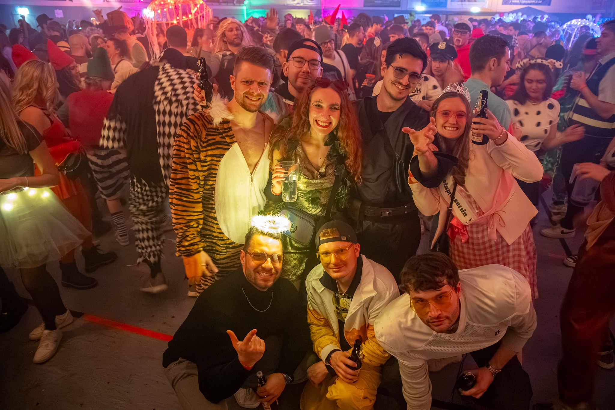 Mit viel Kreativität und Liebe zum Detail sorgten die Gäste in ihren Kostümen – ob als Dalmatiner, Qualle oder Amor – für ein farbenfrohes Faschingsspektakel und eine besondere Atmosphäre in der festlich geschmückten Halle.